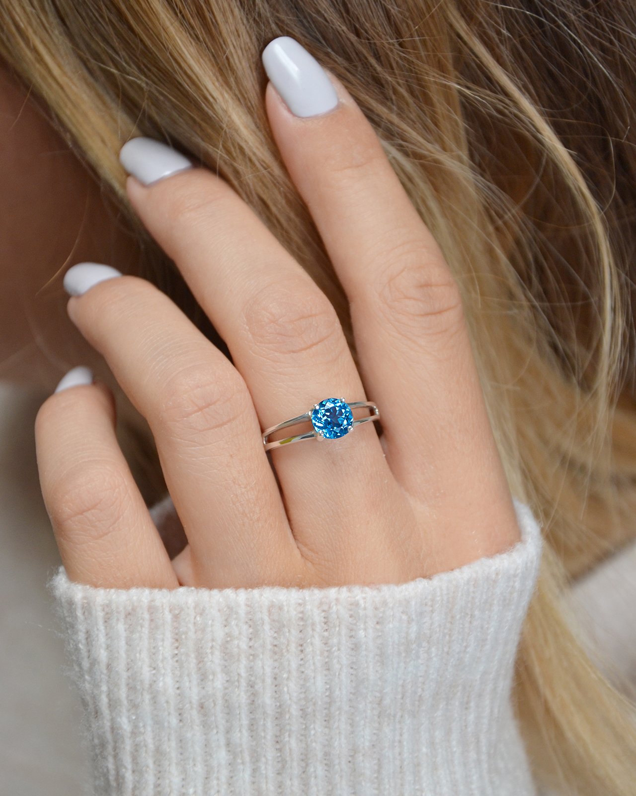 Sa belle couleur bleue suisse sera la touche d'audace parfaite pour vos tenues. Elle ajoute de la profondeur et de la douceur à cette sublime monture pour en faire un bijou d'une incroyable élégance.