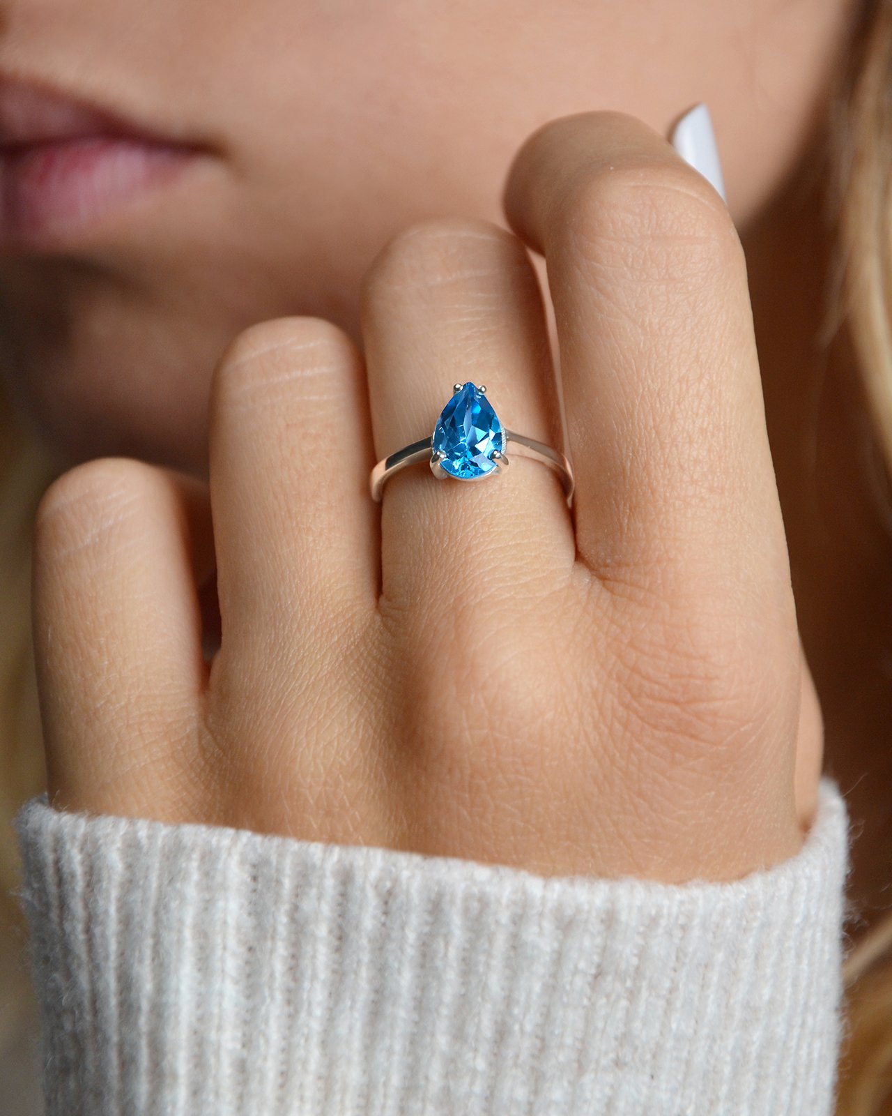 Sa pierre taillée en forme de poire renforce l'intensité de son bleu et laisse son incroyable couleur se révéler grâce aux rayons de lumière.
