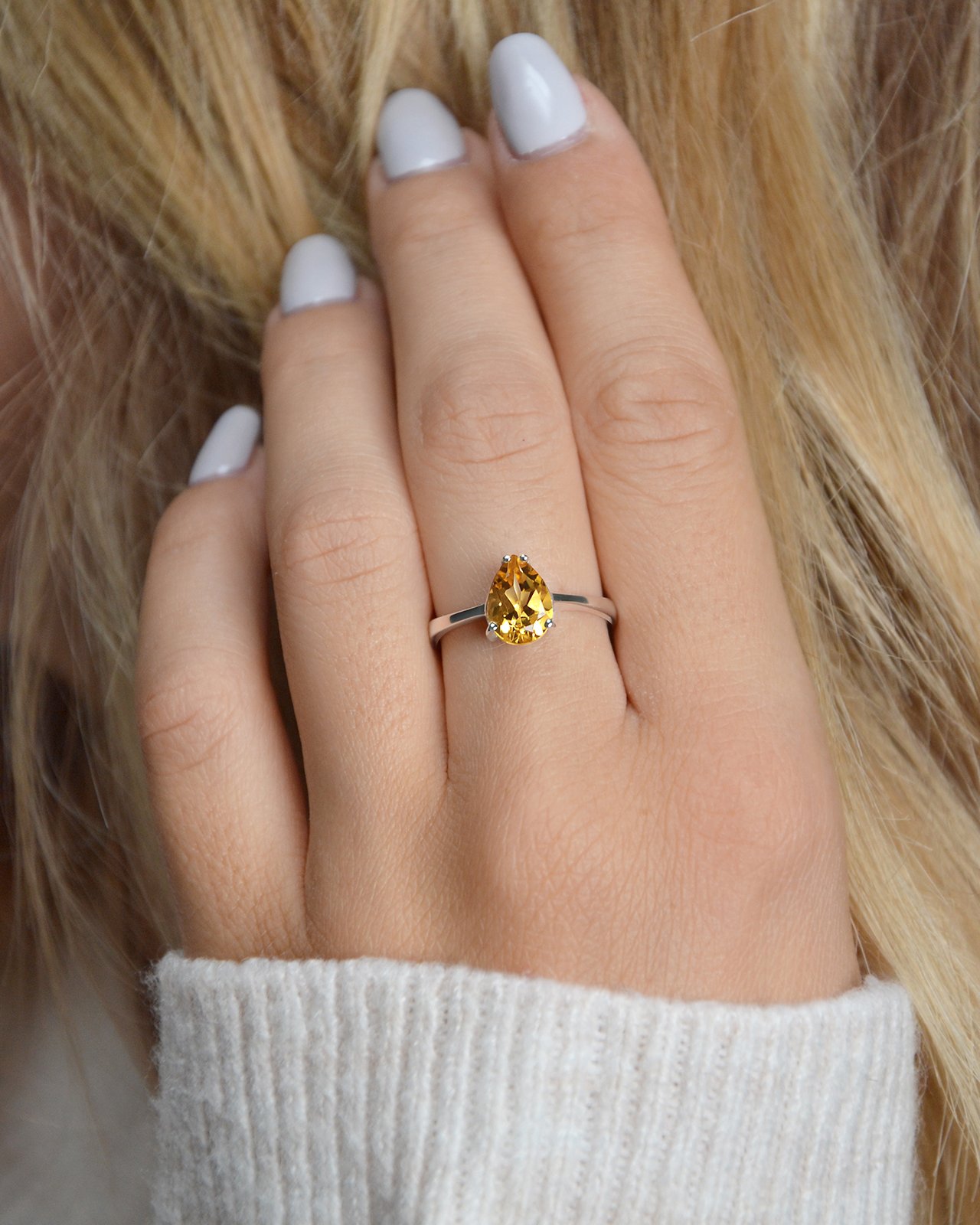 Sa forme poire met en valeur toute l'élégance de cette lumineuse pierre.