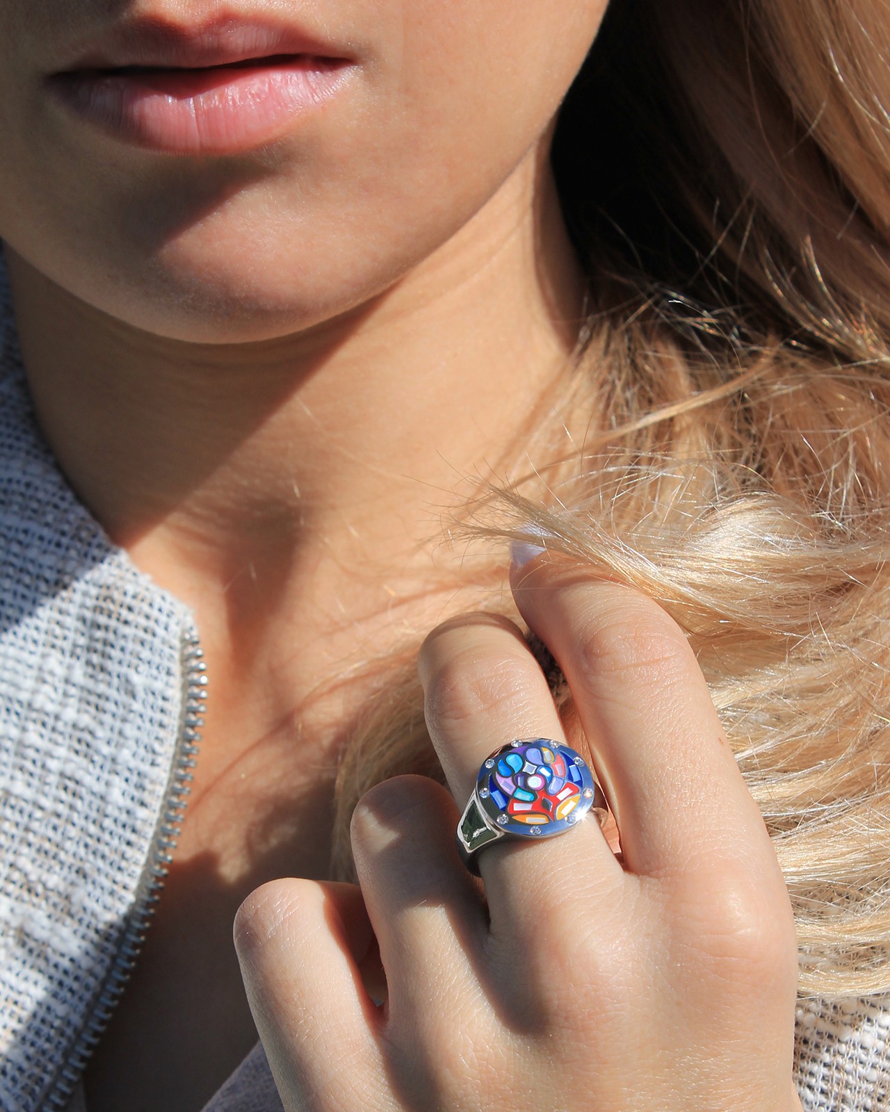 Sa lumineuse mosaïque aux couleurs solaires est sublimée par ses brillants faisant de cette pièce le bijou indispensable à avoir.