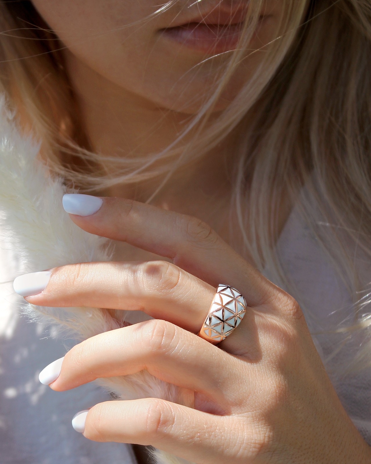 Sa forme bombée apporte une touche de douceur, sublimée par son lumineux blanc pour faire de cette bague un écrin d'élégance.