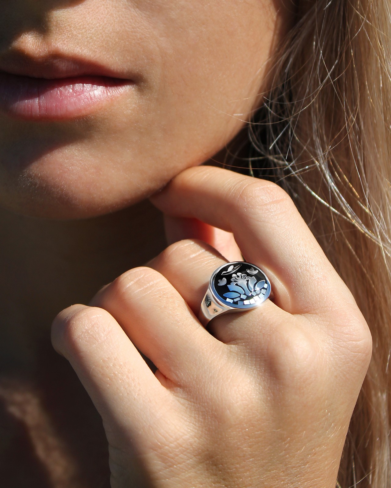 Le noir de son émail et son mélange de nacre apporteront une touche d'élégance tout en la sublimant.