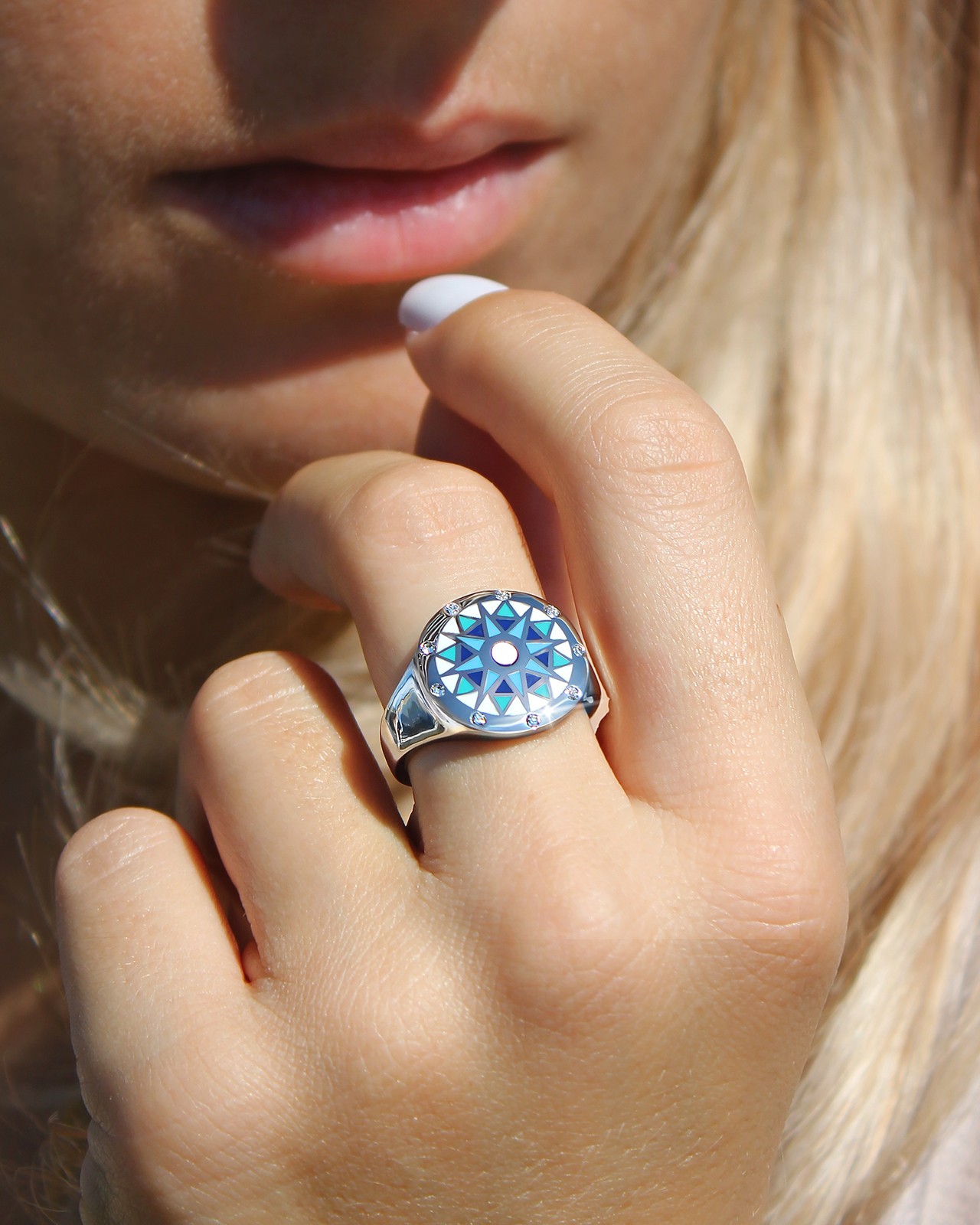 Sa forme chevalière combinée à la fraîcheur de son motif illuminera instantanément votre main.