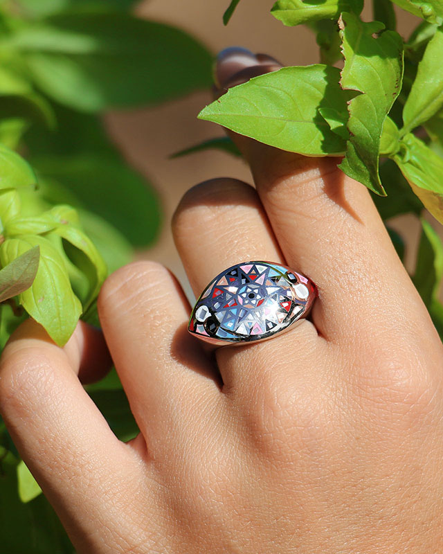 Découvrez la parfaite rencontre entre l'émail et la nacre. Une collection de bijoux uniques où l'association des matières s'inspire de la beauté de l'Italie.