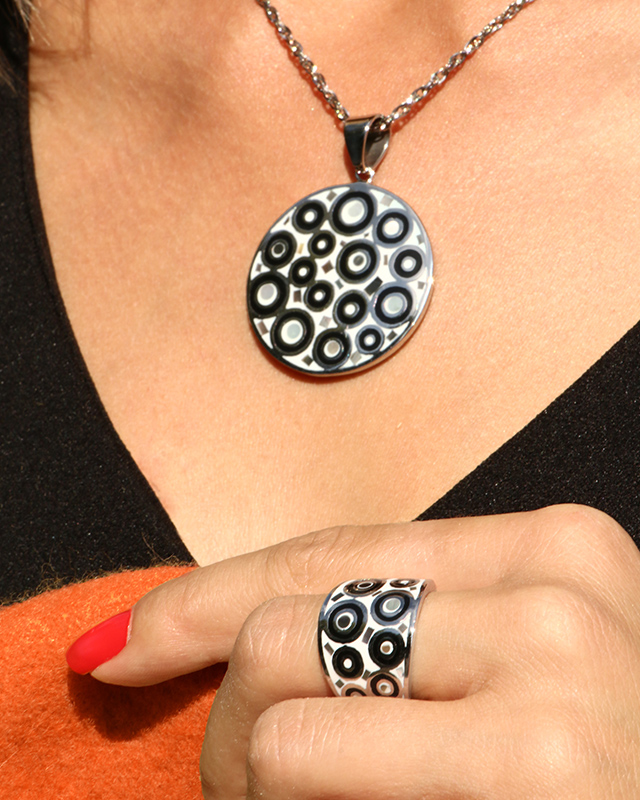 Découvrez la parfaite rencontre entre l'émail et la nacre. Une collection de bijoux uniques où l'association des matières s'inspire de la beauté de l'Italie.