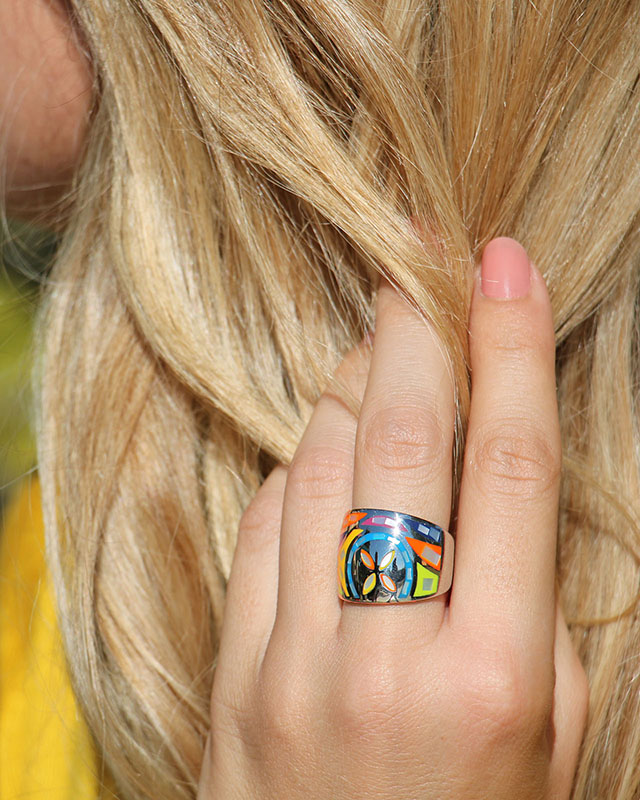 En acier émaillé serti de nacre, ses couleurs vives en feront l'accessoire idéal pour donner un peu de piment à votre look ! Vous pouvez associer cette bague à notre bracelet Macciadosa qui reprend les mêmes motifs et ainsi constituer une parure élégante.