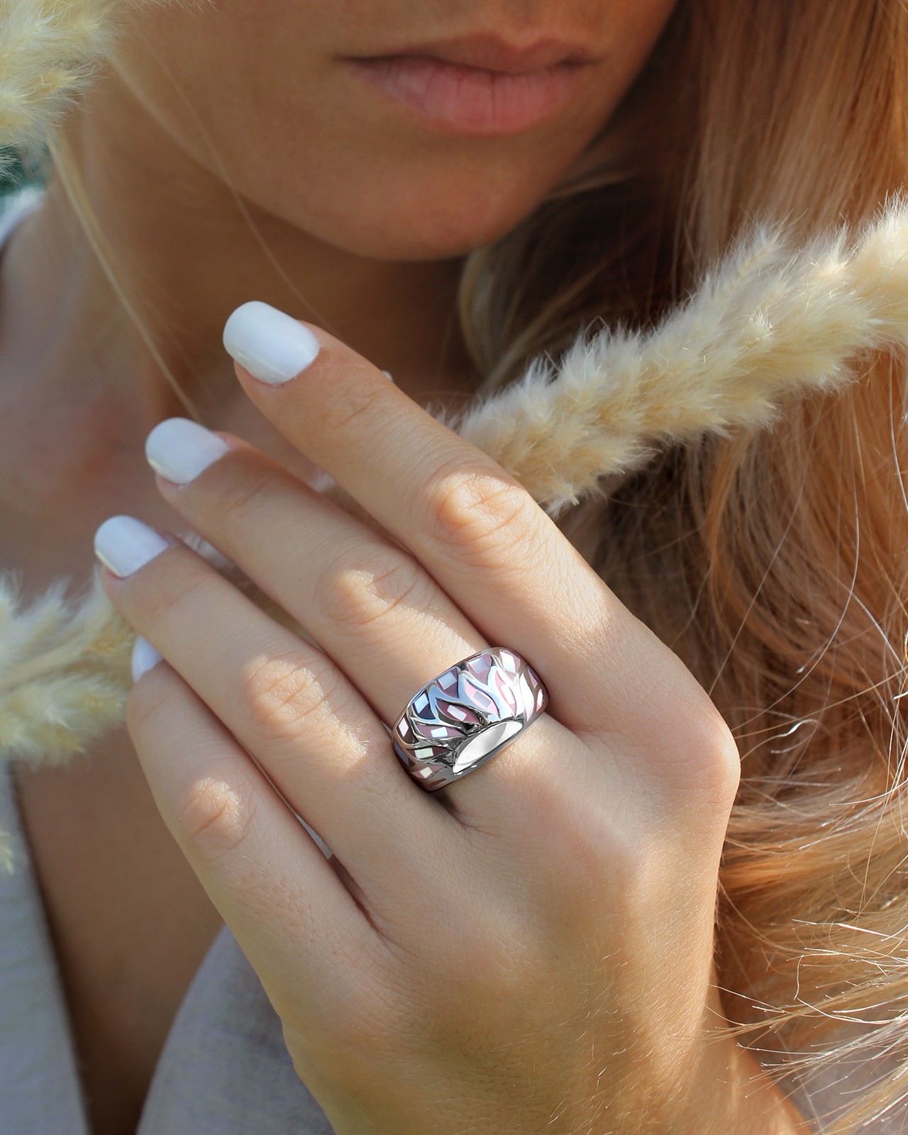 Sur ce bijou nacré, se dessine une sublime palette de rose ravivée par ses petites pétales de nacre.