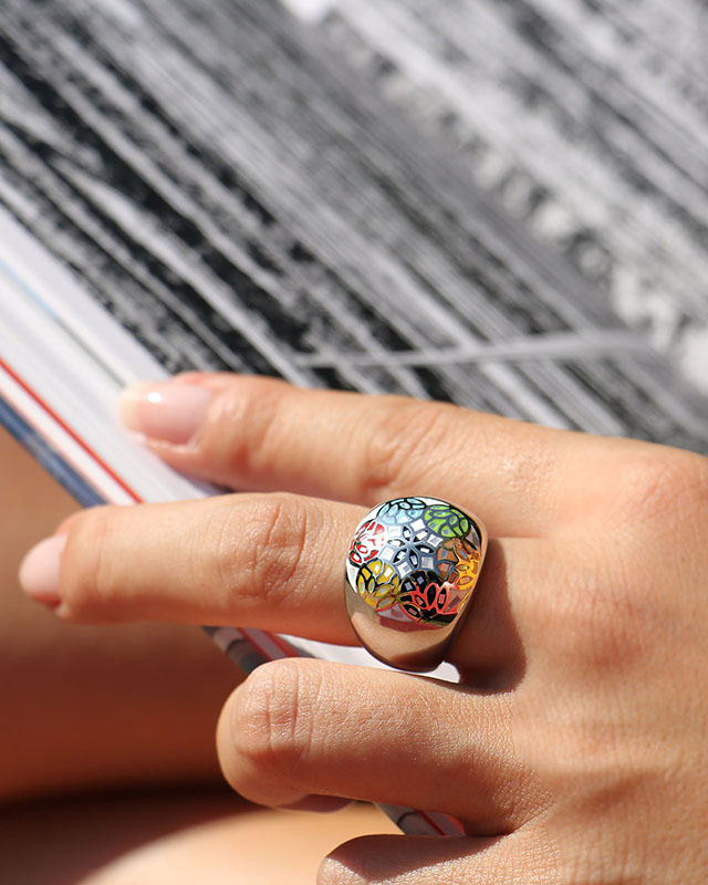Découvrez la parfaite rencontre entre l'émail et la nacre. Une collection de bijoux uniques où l'association des matières s'inspire de la beauté de l'Italie.