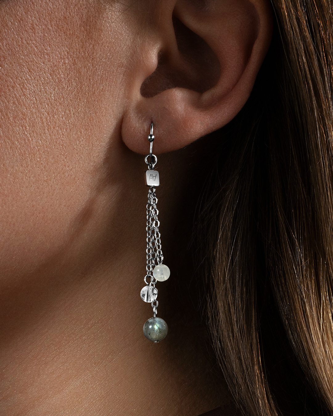 Les boucles d'oreilles combinant la Pierre de Lune, le Cristal de Roche et la Labradorite est un joyau énergétique. Ces trois pierres, choisies pour leurs propriétés distinctes et complémentaires, tissent ensemble un maillage d'énergies vibrantes pour accompagner l'âme dans son quotidien.