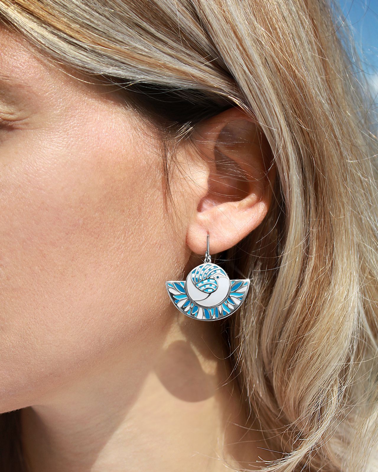 Ses nuances de bleu et de blanc donnent un incroyable coup d'éclat à cette pièce nacrée.