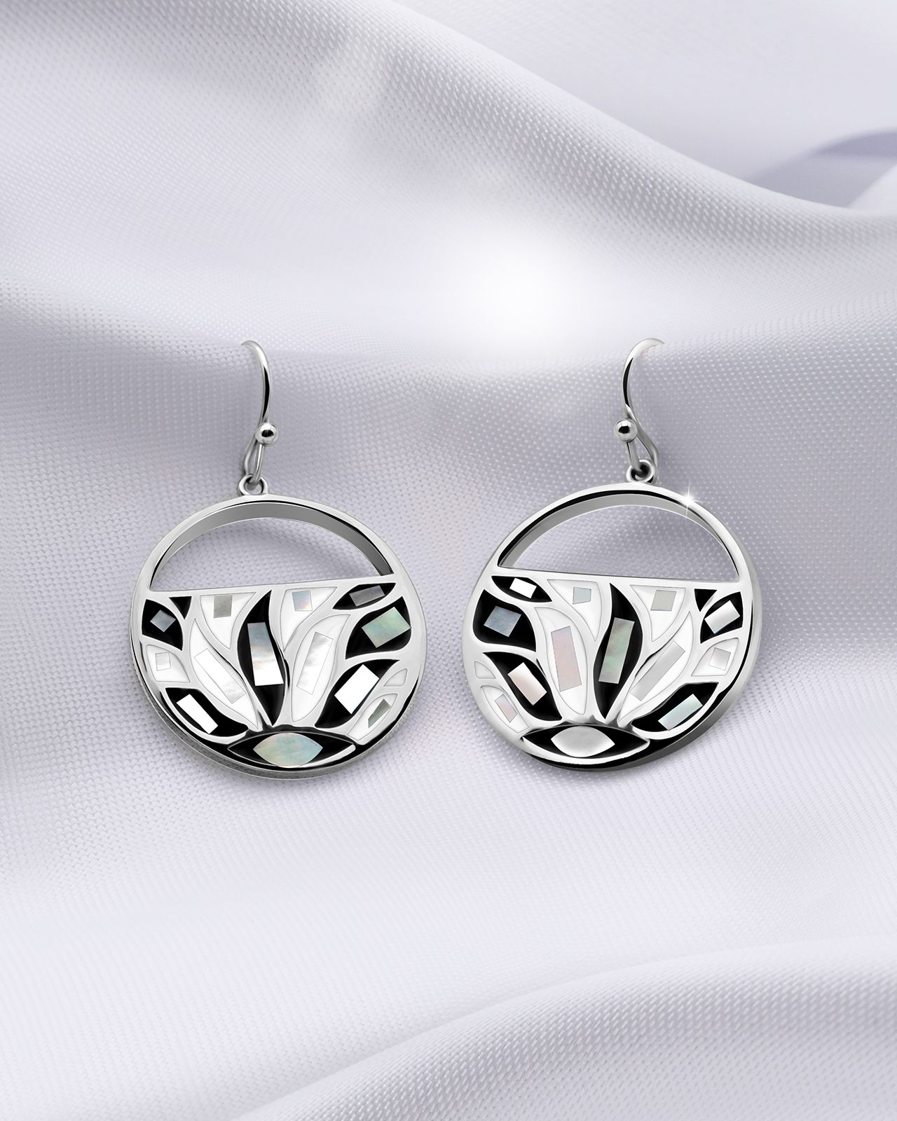 Sa superbe mosaïque se dévoile par sa forme si distincte. Sur ce bijou, se dessine un magnifique soleil sublimé par son mélange de nacre et d'émail mettant en valeur toute la beauté de son motif.
