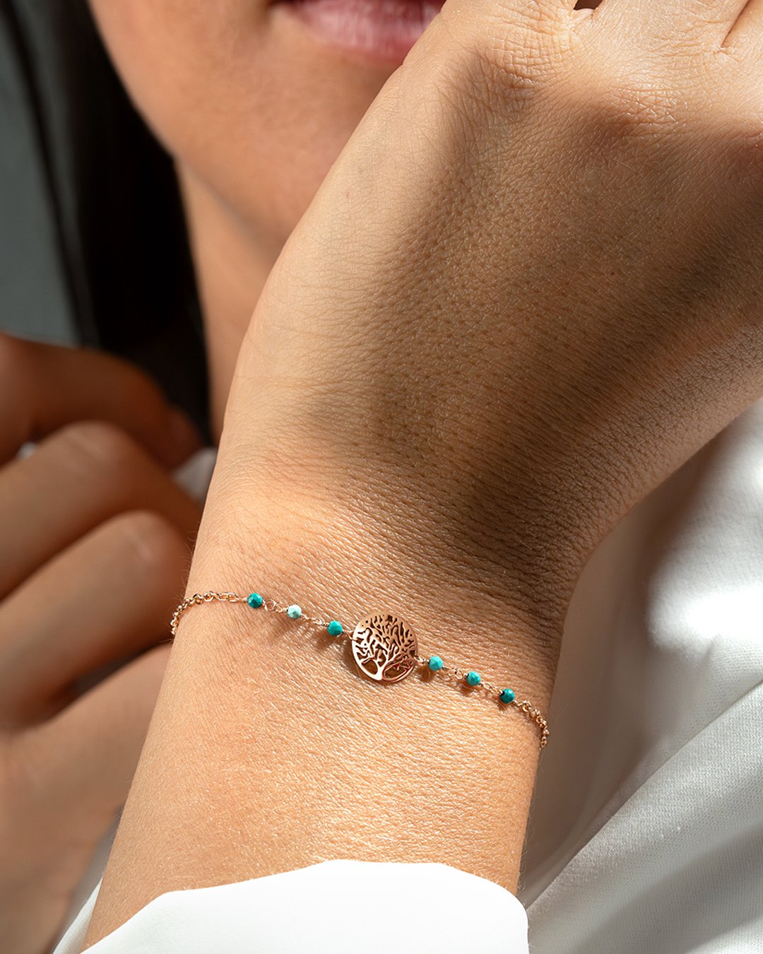 - Matière du bracelet Acier rosé inoxydable et turquoise