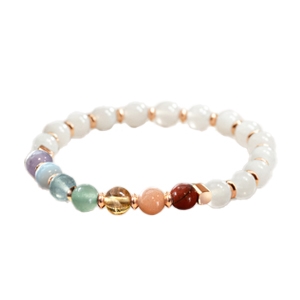En réunissant les pierres d'alignement des 7 chakras (comme l'Œil de Tigre, l'Aventurine ou le Lapis-Lazuli) et en les unissant par le Cristal de Roche, ce bracelet devient un véritable outil de clarté.