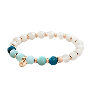 Le reste du bracelet est entièrement composé de Pierre de lune, une gemme appréciée pour son éclat nacré et son jeu de lumière doux, parfois bleuté.