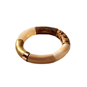 Le bracelet est composé d'éléments raffinés d'une couleur Beige marbré, Doré pailleté, Brun pétrole.