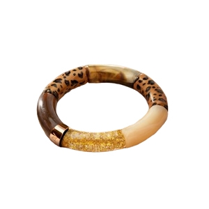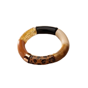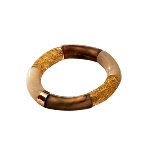 Confectionnés à la main, ces bijoux séduisent par l’harmonie parfaite entre la profondeur des tons ambrés et la brillance délicate des particules dorées. Chaque bracelet est une pièce unique qui incarne le savoir-faire artisanal et l’amour des détails. Les pièces centrales, gravées du nom Anna Velazia, soulignent l’authenticité de cette création tripartite.