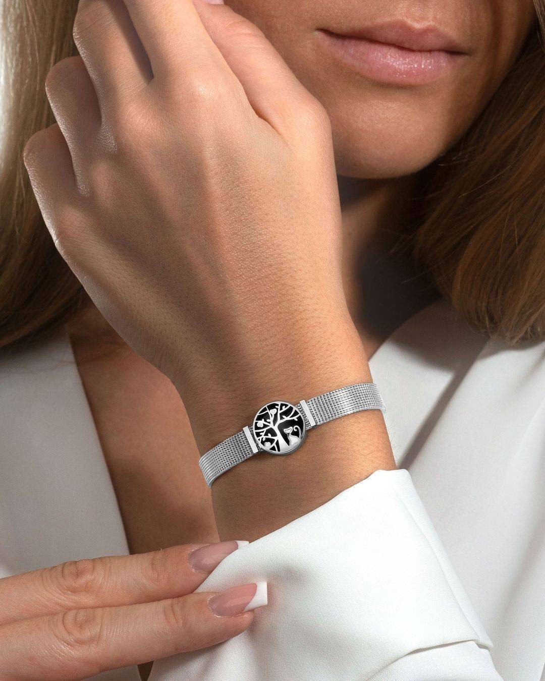- Matière du bracelet et de la pastille Acier argenté inoxydable