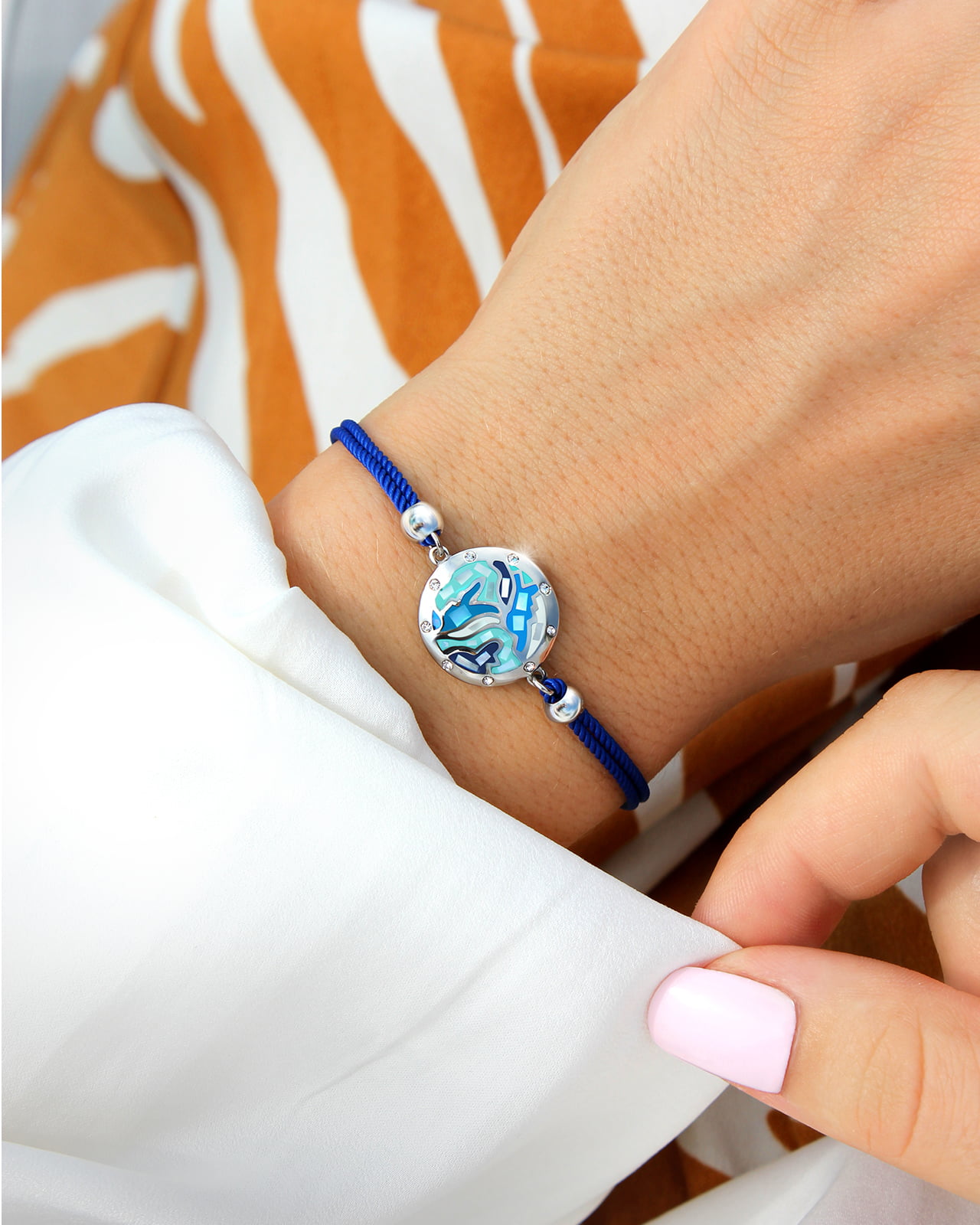 Sa superbe mosaïque se dévoile de par sa forme si distincte. Ce bijou est composé d'une magnifique palette de bleu, sublimée par ses brillants.