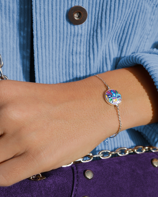 Les motifs colorés de cette pièce et la disposition de sa mosaïque en font un bijou unique à la fois tendance et original.