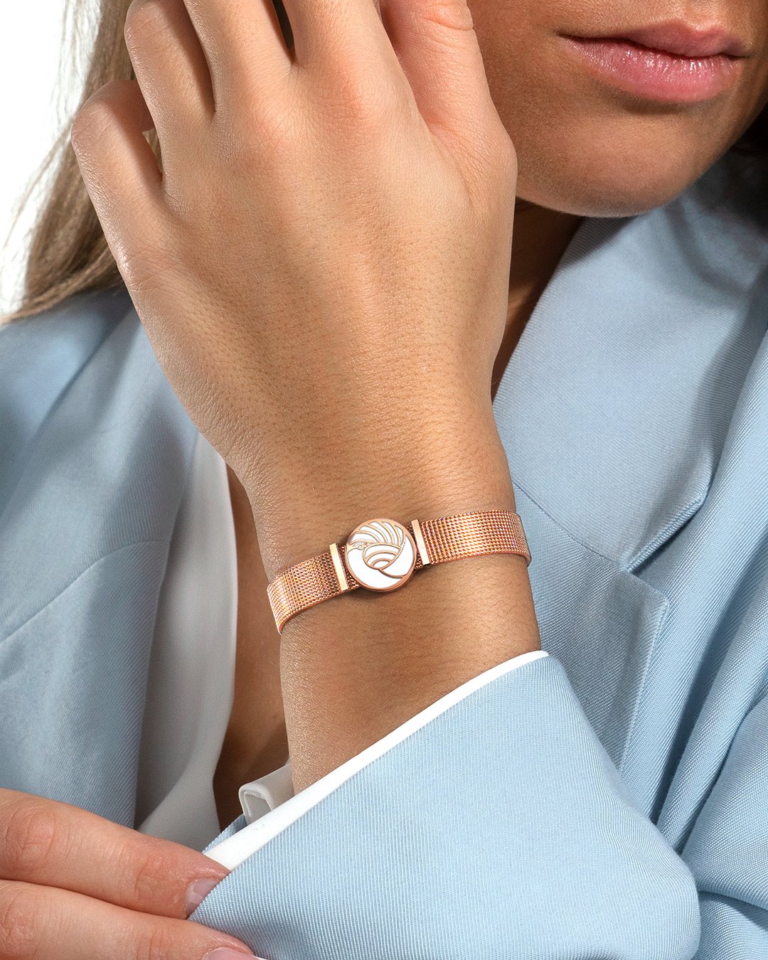 - Matière du bracelet et de la pastille Acier rosé inoxydable