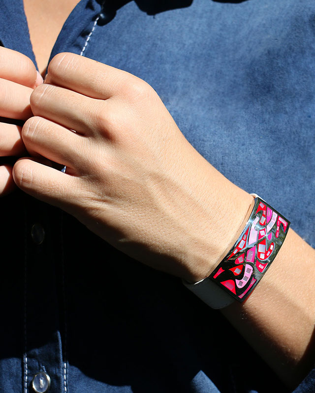 D'une largeur de 2 cm, le bracelet s'adapte très facilement avec son système auto-fermant et ajustable à tout type de poignet.