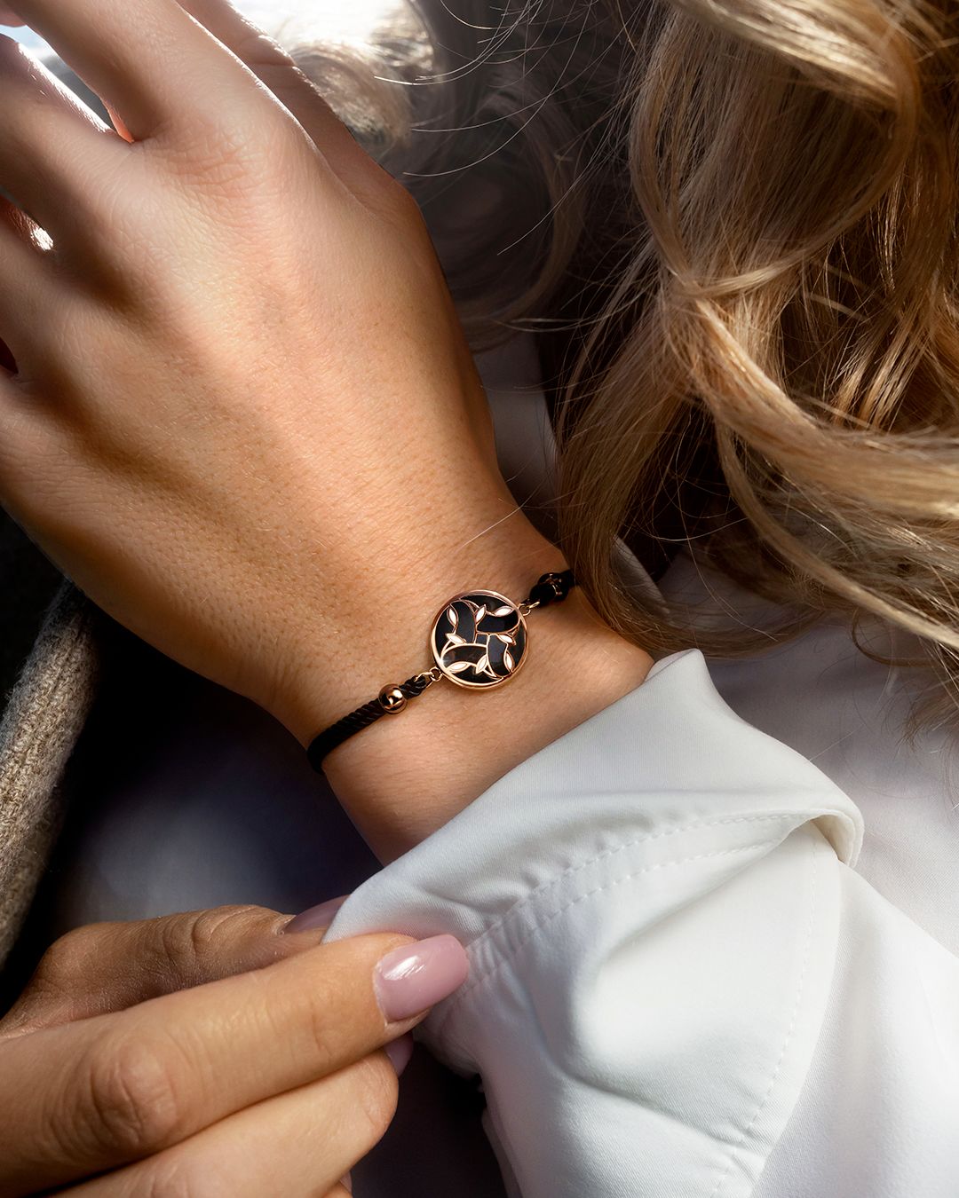 Le noir de son bracelet coton vient délicatement contrasté son médaillon pour un rendu unique. Il viendra avec élégance compléter tous vos looks !