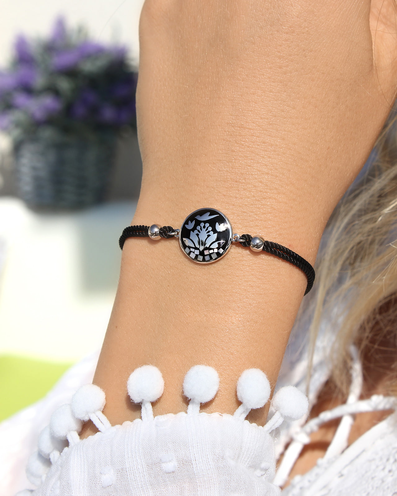 Le noir de son bracelet en coton apportera une touche d'élégance à votre poignet tout en le sublimant.