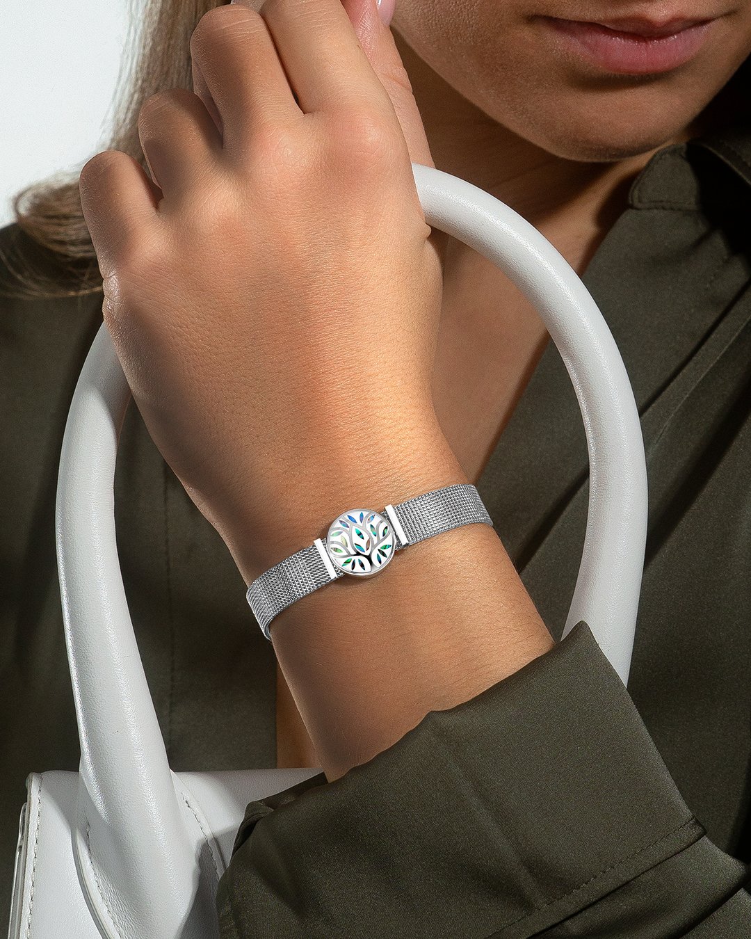 Le style « cotte de maille » de ce bracelet apportera une touche d'élégance et de modernité à votre tenue.