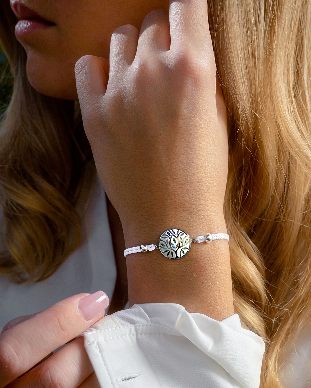 Le blanc de son bracelet coton habillera parfaitement tous vos looks tout en apportant une touche de fraîcheur.