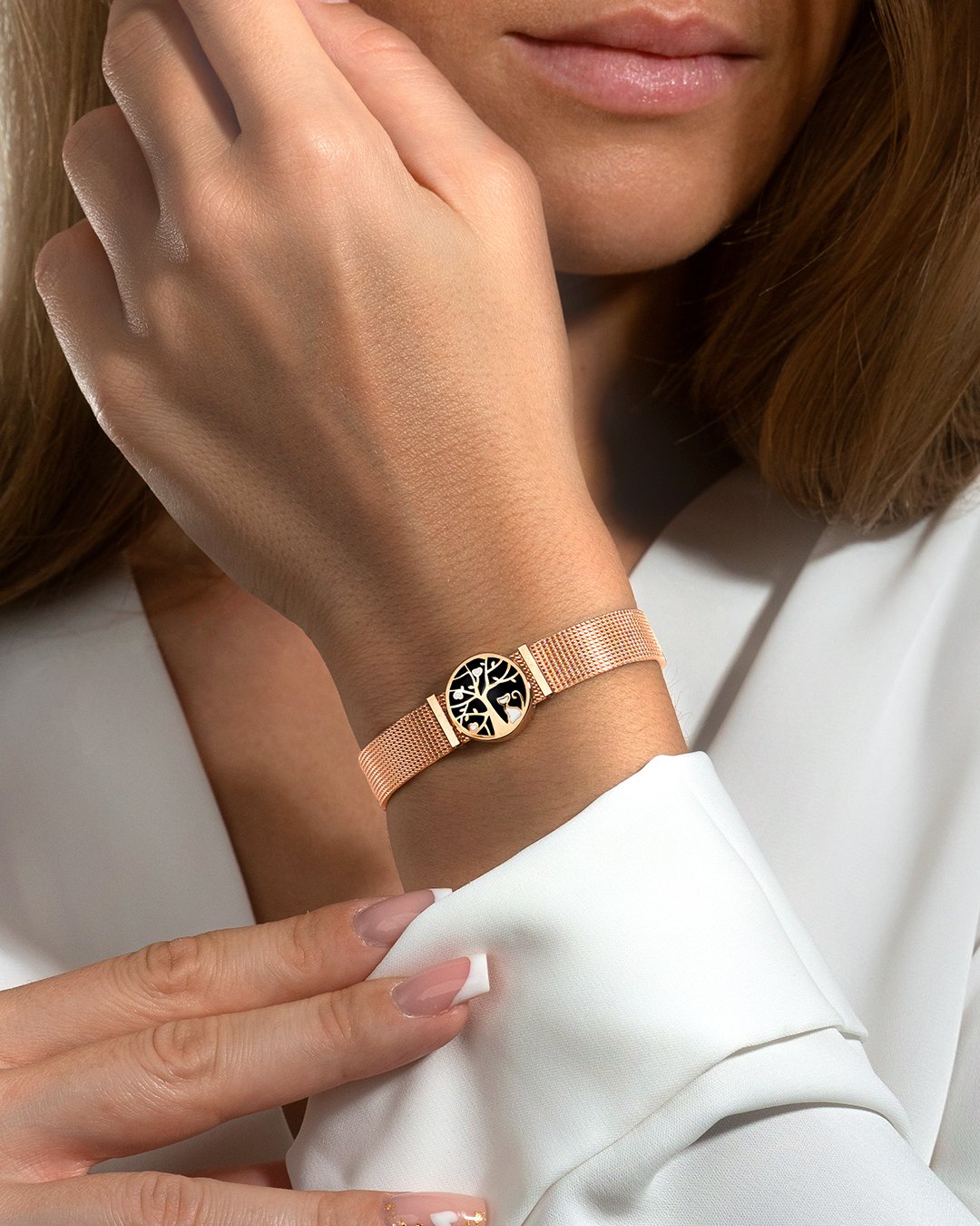 - Matière du bracelet et de la pastille Acier rosé inoxydable