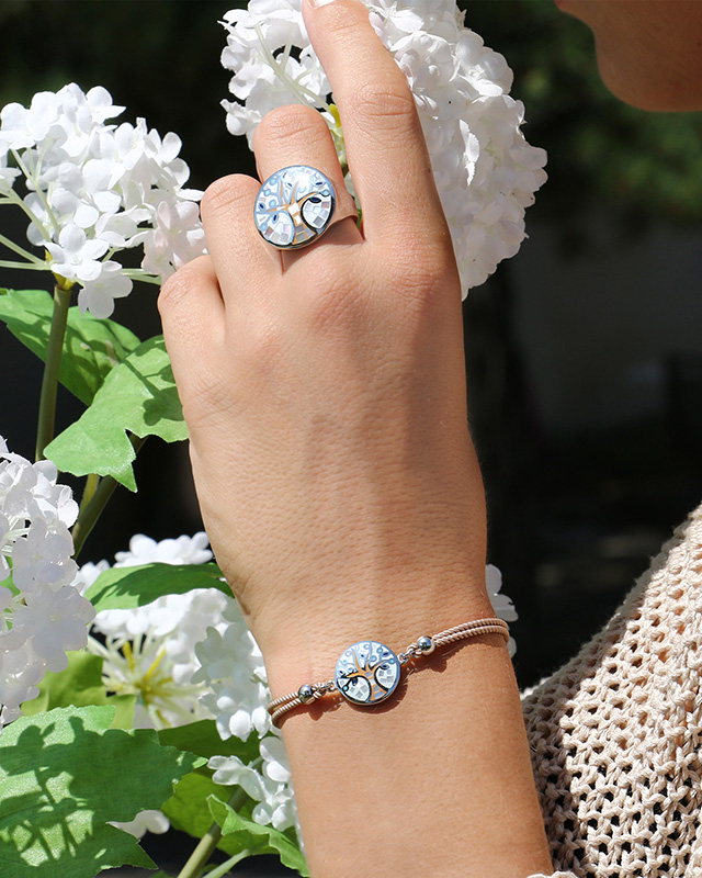 Découvrez la parfaite rencontre entre l'émail et la nacre. Une collection de bijoux uniques où l'association des matières s'inspire de la beauté de l'Italie.