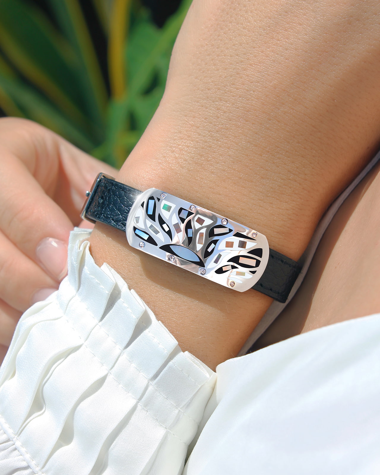 D'une largeur de 1 cm, le bracelet s'adapte très facilement avec son système réglable allant de 15 à 22 cm de longueur.