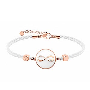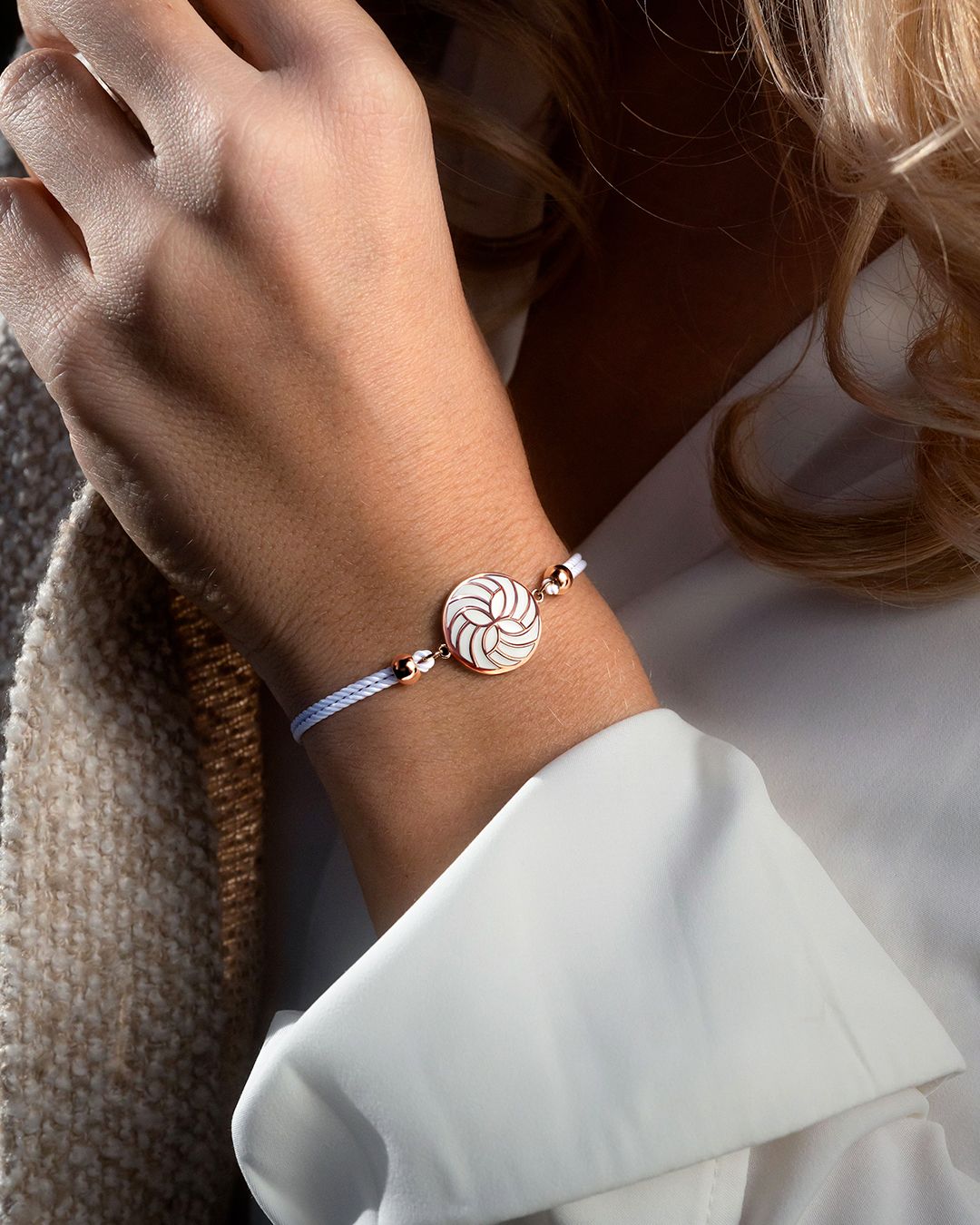 Le blanc de son bracelet coton transcende avec raffinement ce bijou tout en le rendant unique.