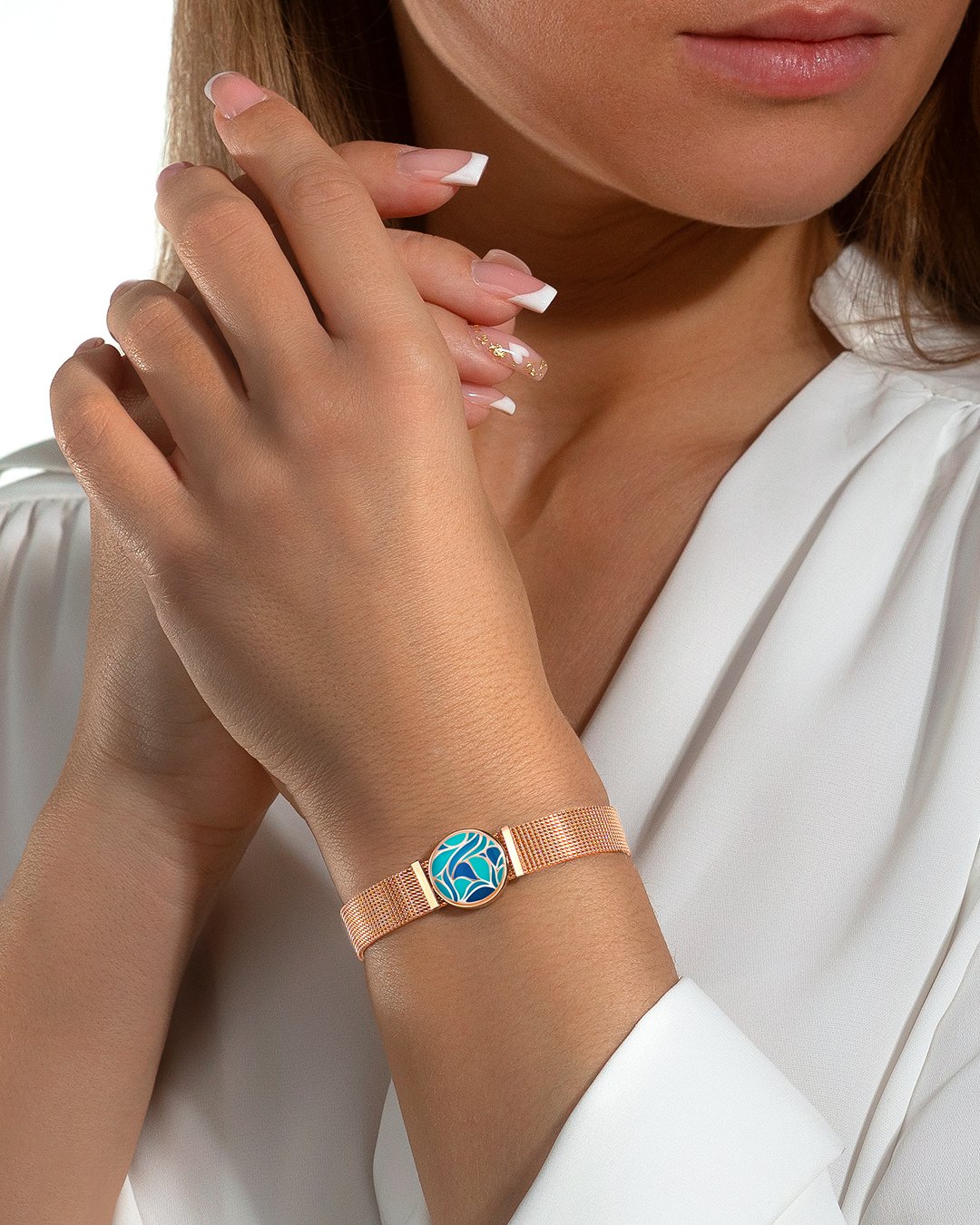 - Matière du bracelet Maille milanaise rosée