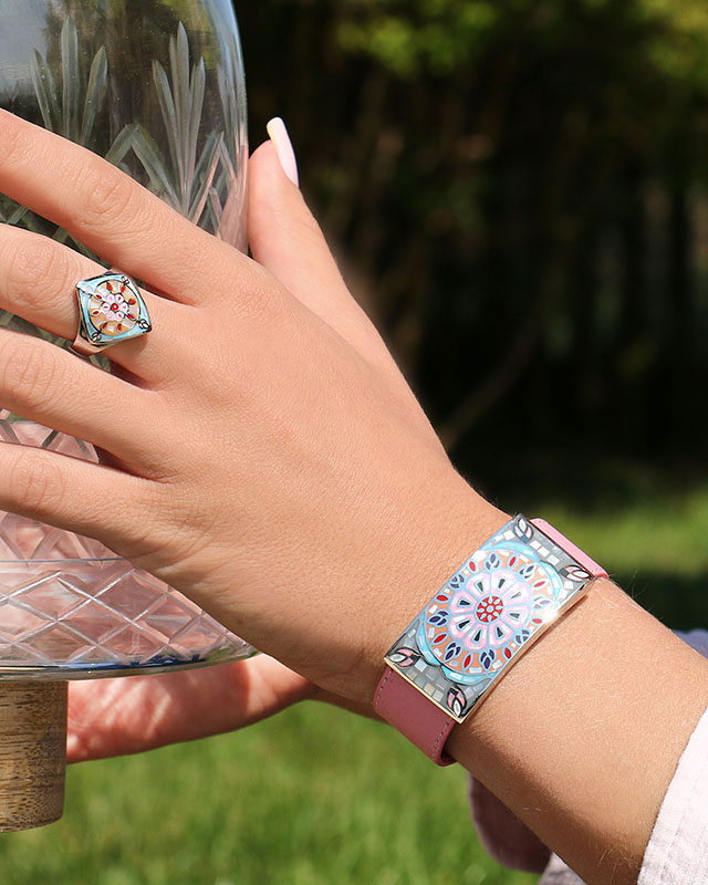Découvrez la parfaite rencontre entre l'émail et la nacre. Une collection de bijoux uniques où l'association des matières s'inspire de la beauté de l'Italie.