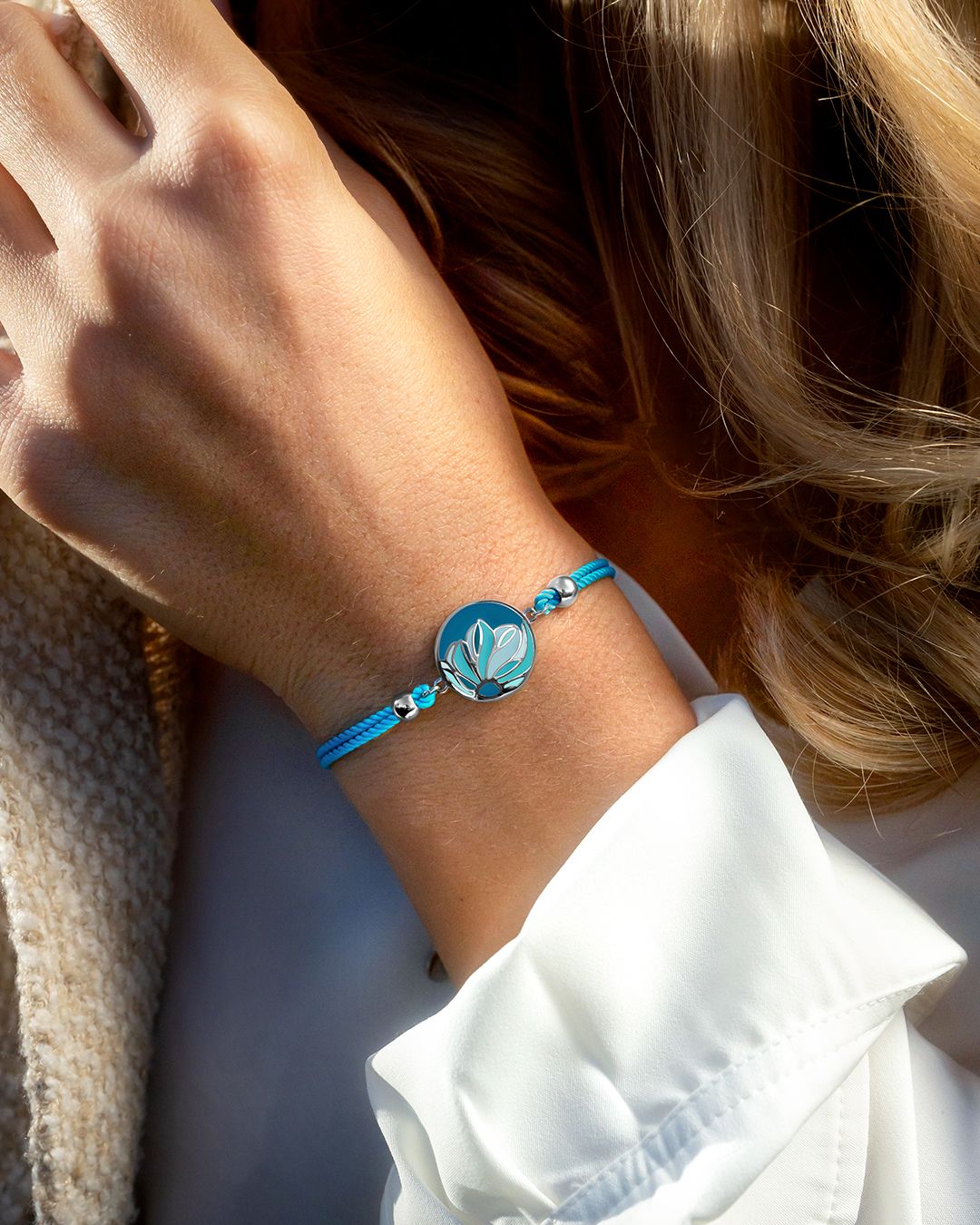 Le bleu-vert de son bracelet coton vous apportera la touche de couleur qui complètera parfaitement vos tenues et qui sublimera votre poignet.