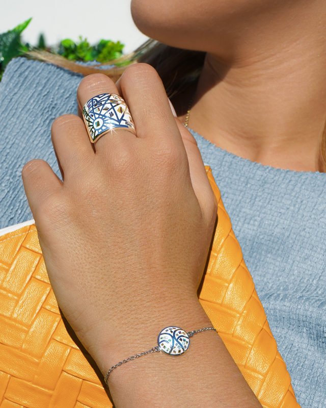 Découvrez la parfaite rencontre entre l'émail et la nacre. Une collection de bijoux uniques où l'association des matières s'inspire de la beauté de l'Italie.