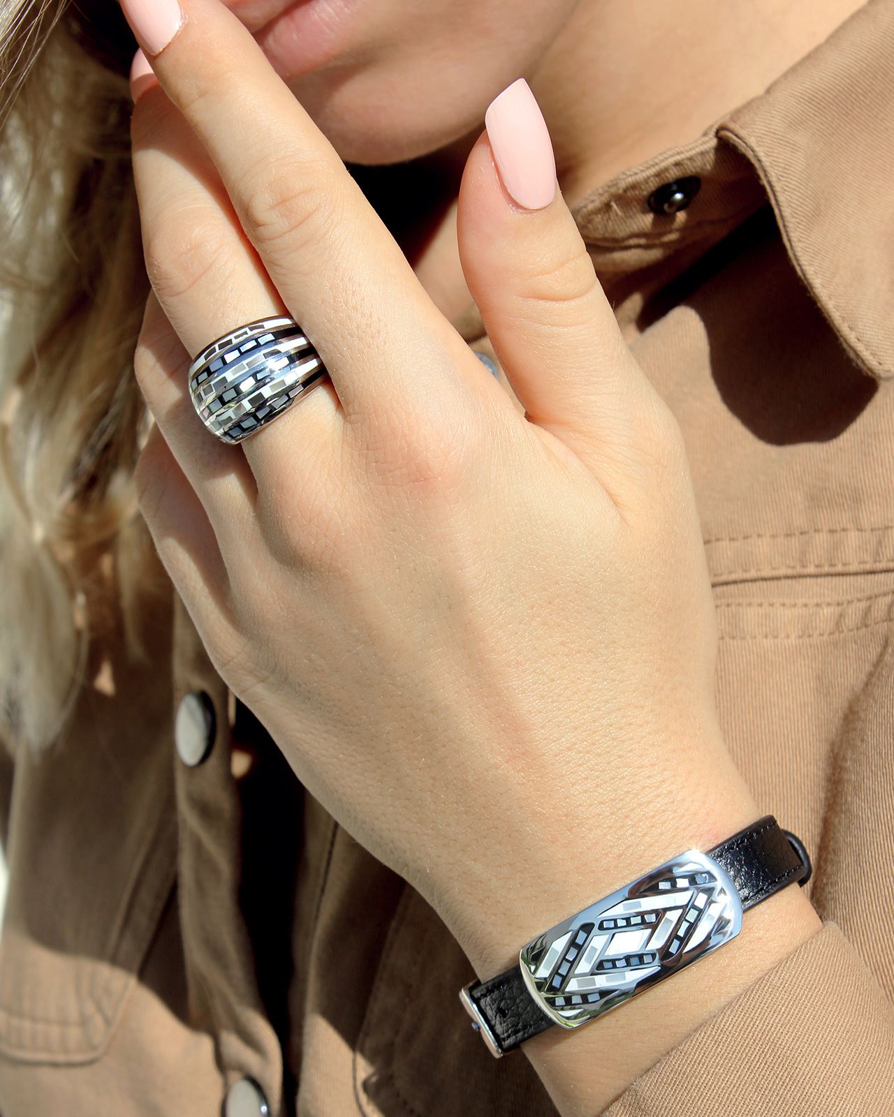 Les lignes épurées de ce bijou apportent de la légèreté et de l'élégance avec ces couleurs noires et blanches.