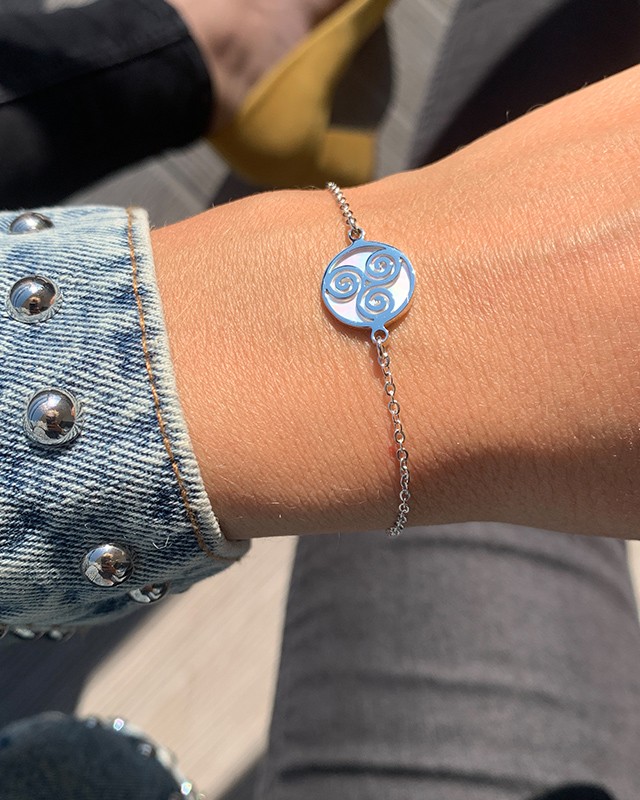 Ce bijou représente le Triskèle, symbole de la vie et de l'éternel recommencement. Les trois branches du Triskèle représentent les trois éléments : la terre, l'eau et le feu.