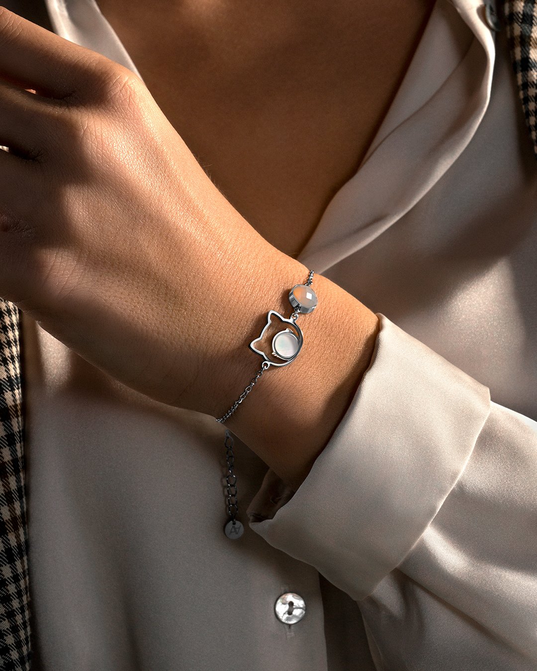 D'une longueur de 16cm et muni de sa chaînette réglable allant jusqu'à 4cm, il s'adaptera facilement à tous les types de poignets pour une longueur totale de 20cm.