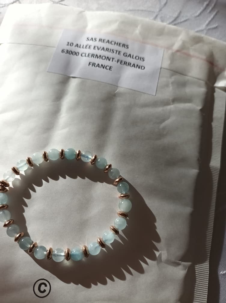 - Matière du bracelet Acier rosé inoxydable et aigue marine