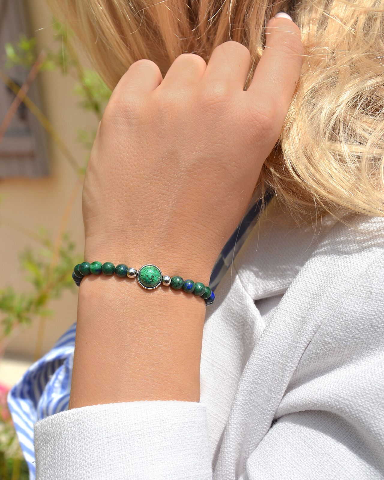 La Chrysocolle est la pierre de la paix et de l'apaisement. Elle encourage au pardon et à la compassion. Elle fait disparaître la culpabilité et les angoisses que l’on peut ressentir. Elle est également associée à la compréhension et au dialogue. La chrysocolle régule les émotions et canalise les troubles de l'humeur. De plus, la chrysocolle est efficace pour soulager les infections de la gorge et des poumons (angine, trachéite, bronchite).