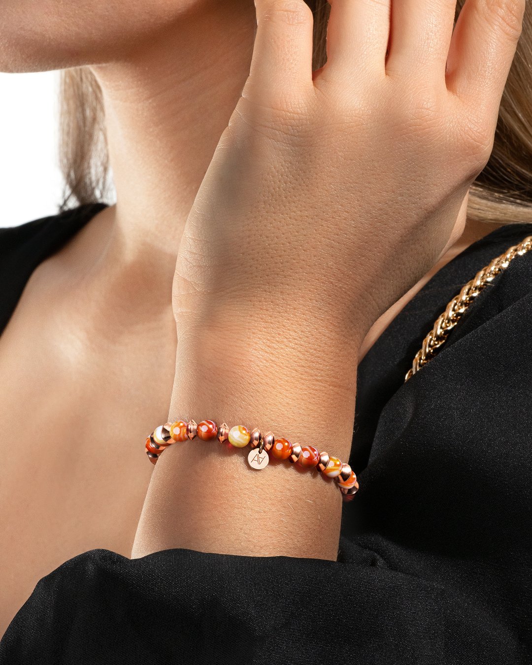 - Matière du bracelet Acier rosé inoxydable et agate bandée