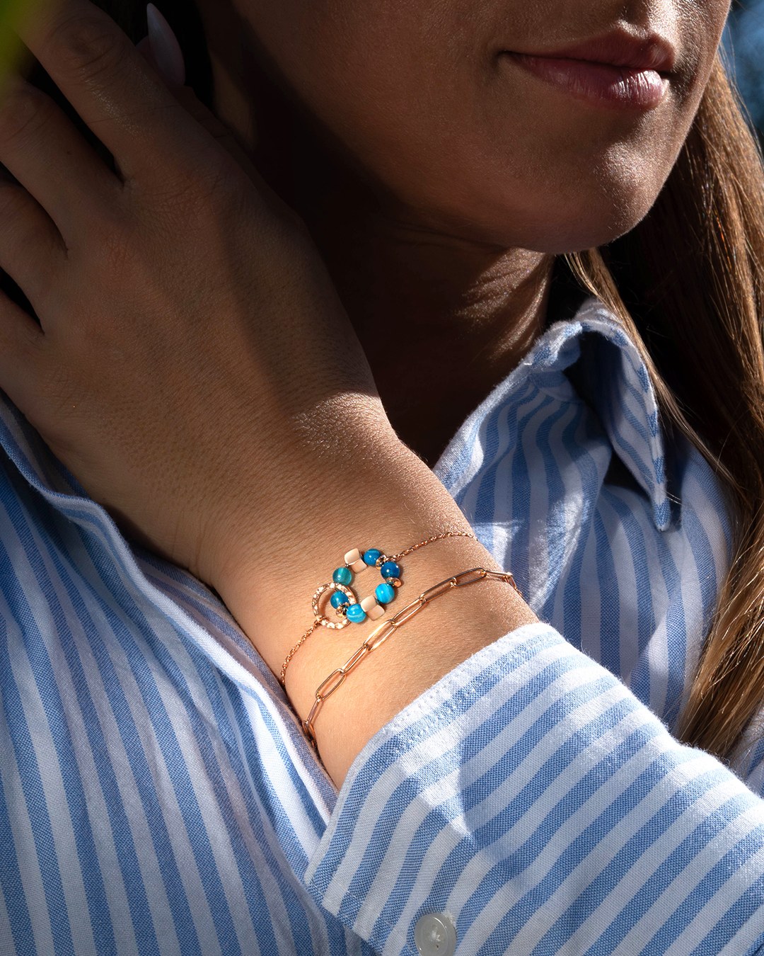 Découvrez la parfaite rencontre entre l'émail et la nacre. Une collection de bijoux uniques où l'association des matières s'inspire de la beauté de l'Italie.