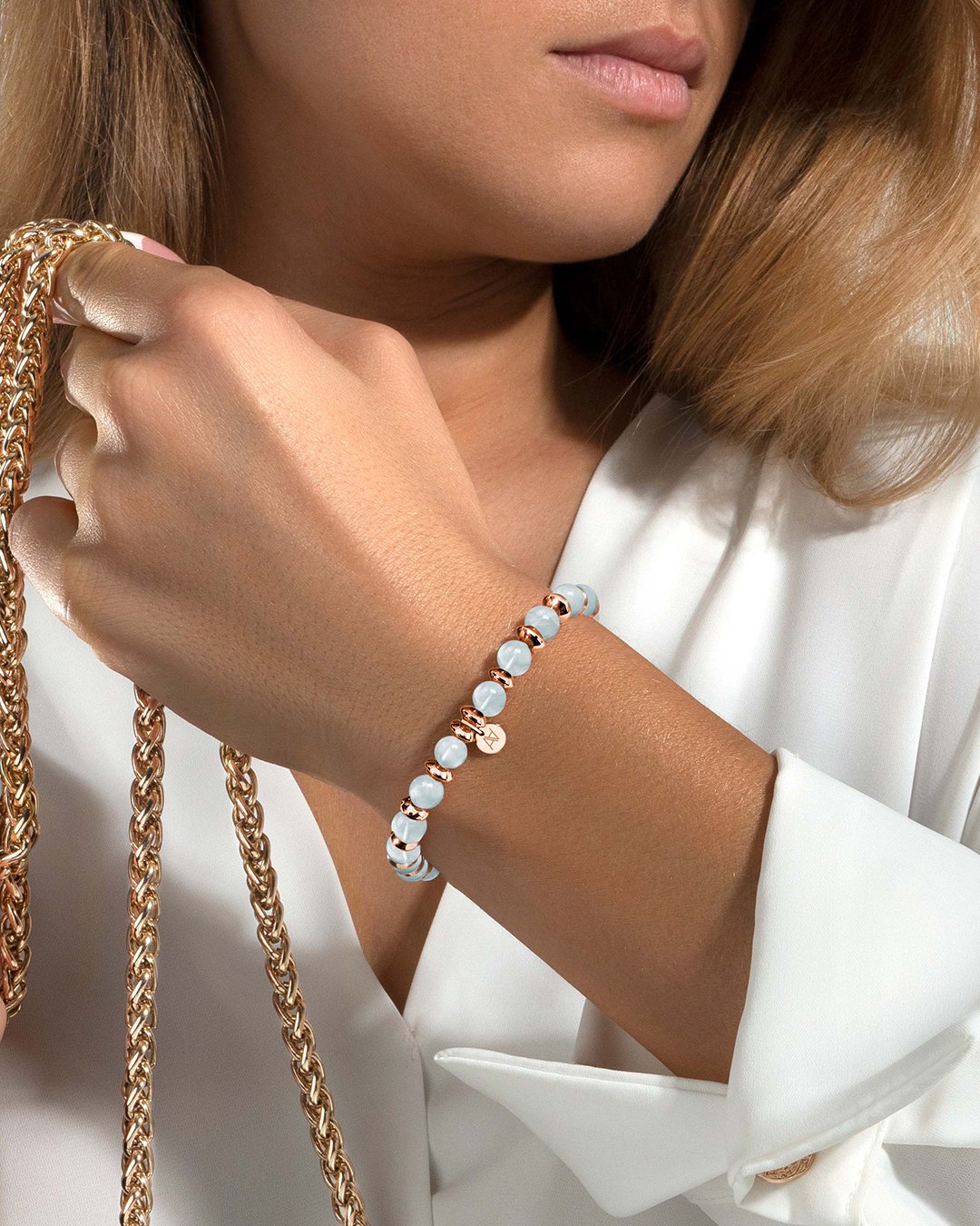 - Matière du bracelet Acier rosé inoxydable et aigue marine