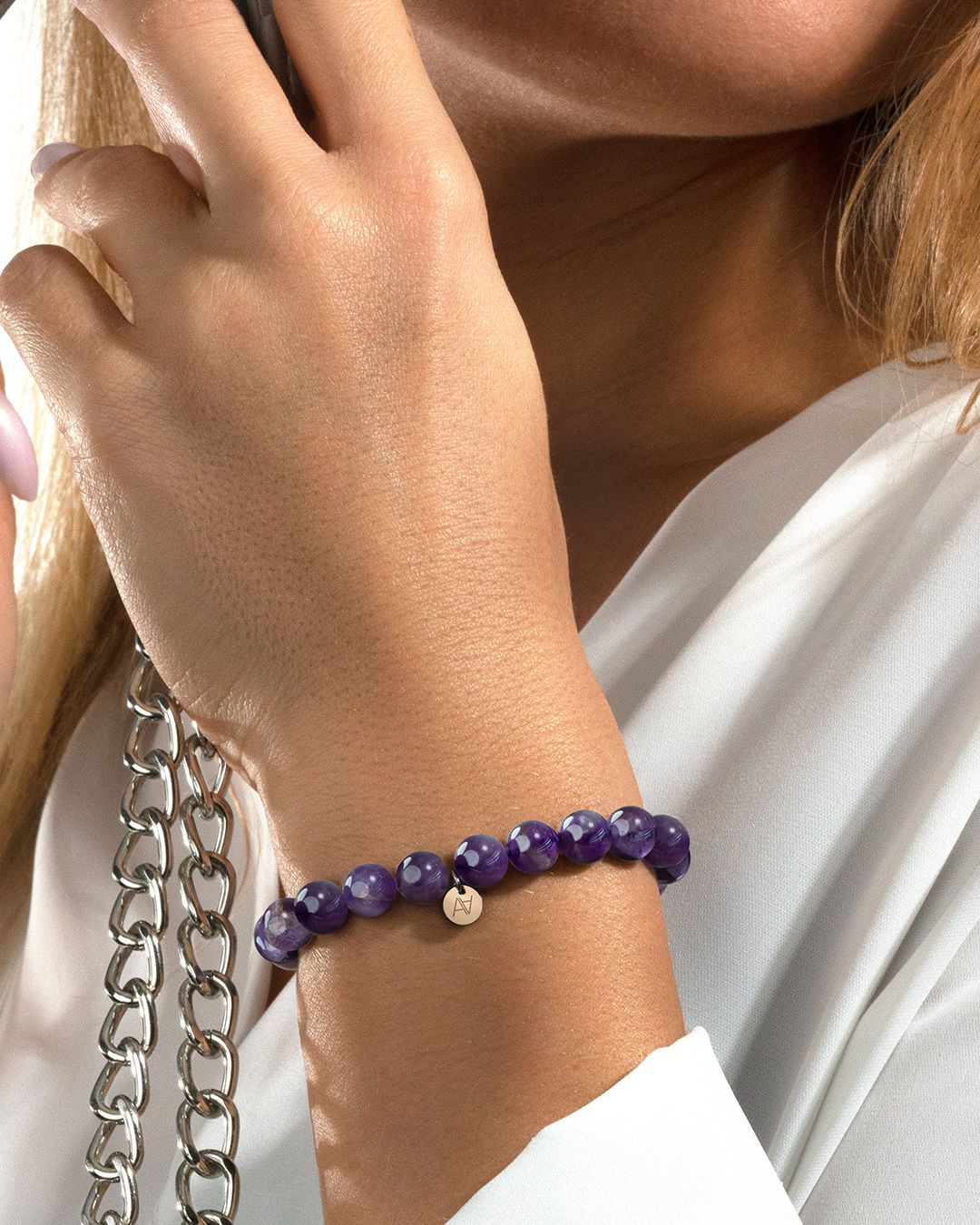 - Matière du bracelet Acier rosé inoxydable et améthyste