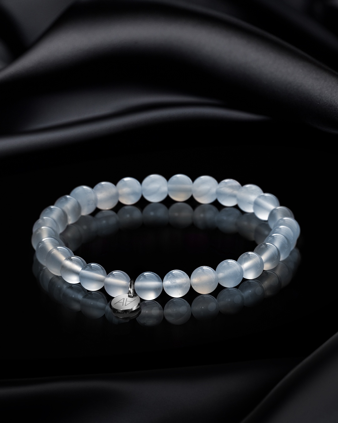- Matière du bracelet Acier argenté inoxydable et calcédoine