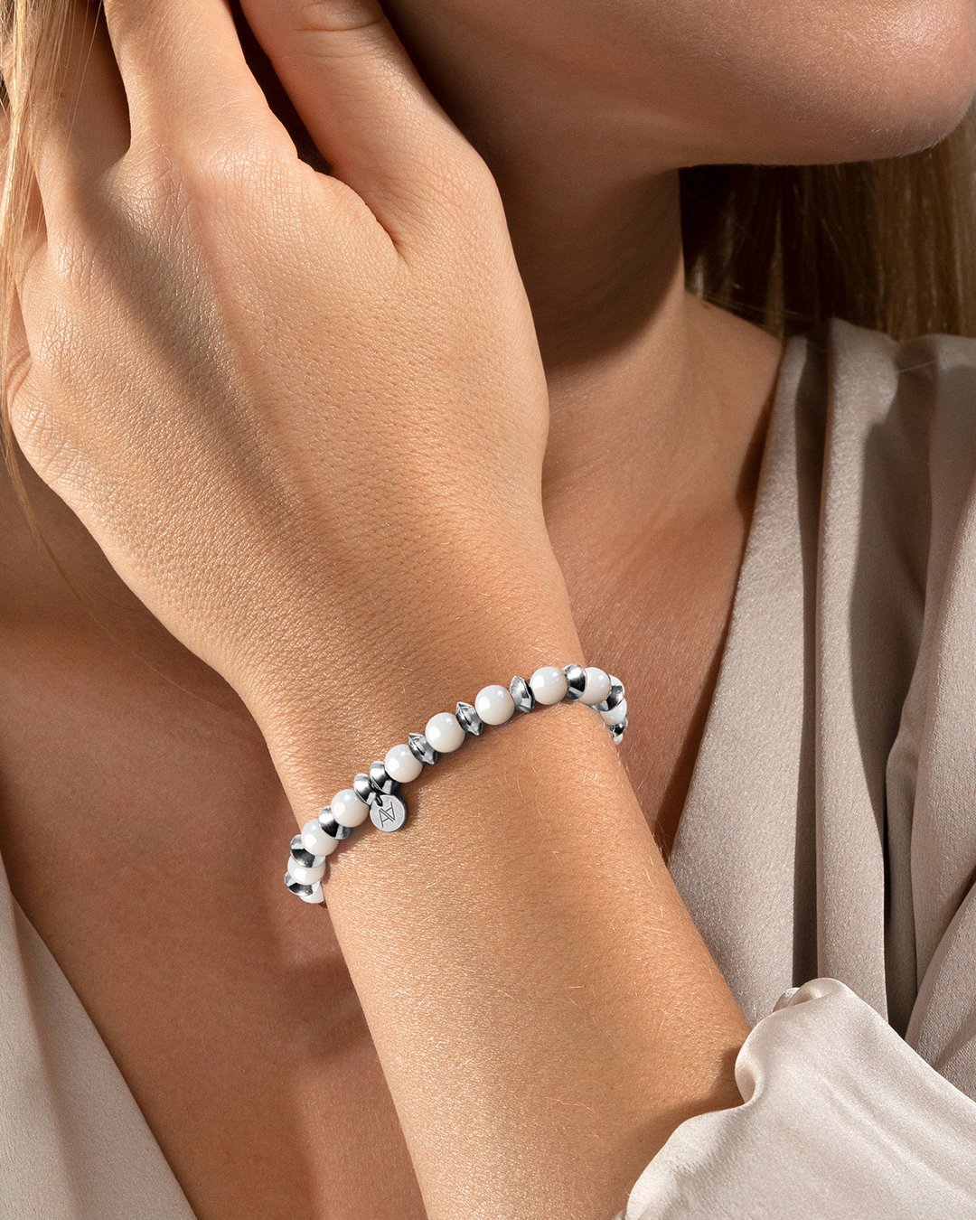 - Matière du bracelet Acier inoxydable et corail de bambou blanc