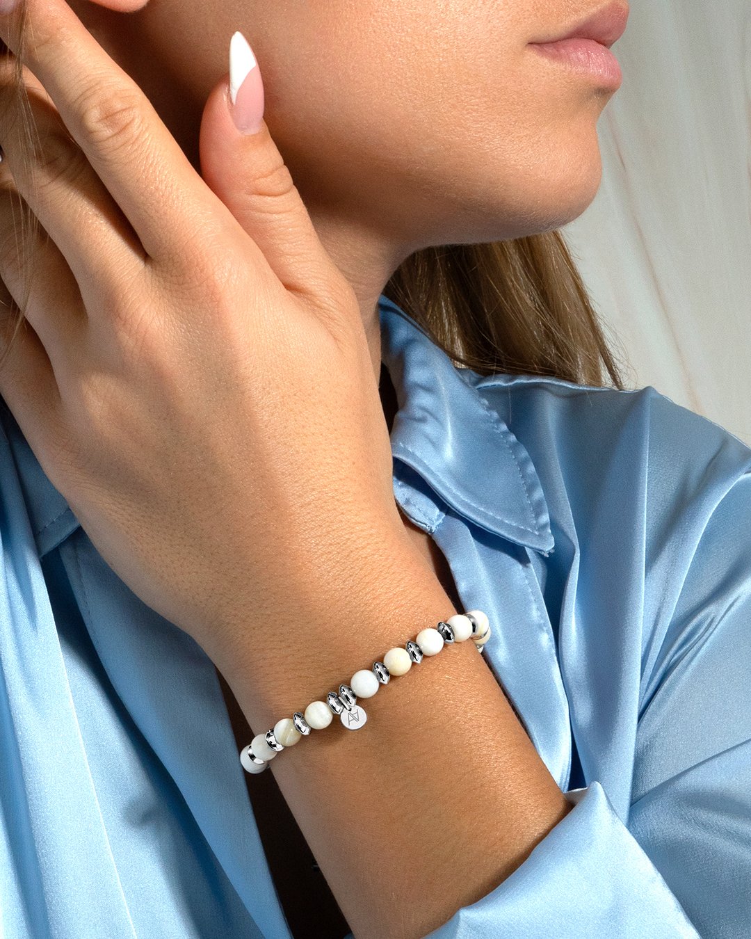 La nacre est constituée de cristaux d'aragonite, de calcium et de carbone. Elle dispose d'une magnifique couleur laiteuse et de lumineux reflets irisés qui lui confèrent tout son charme.