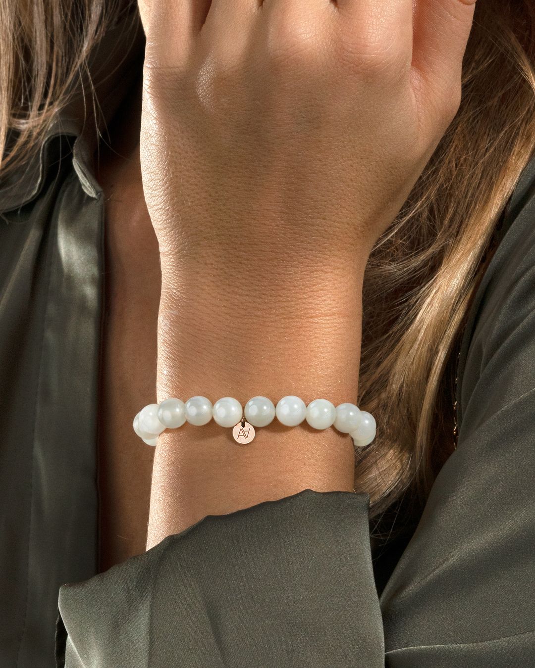 - Matière du bracelet Acier rosé inoxydable et pierre de lune beige